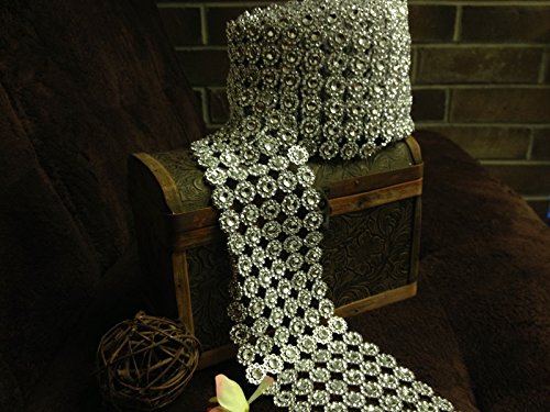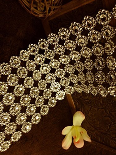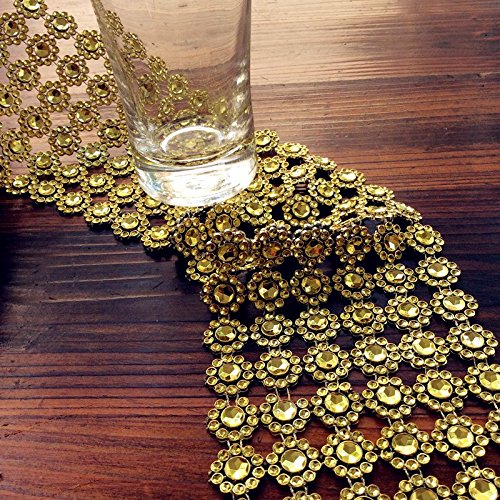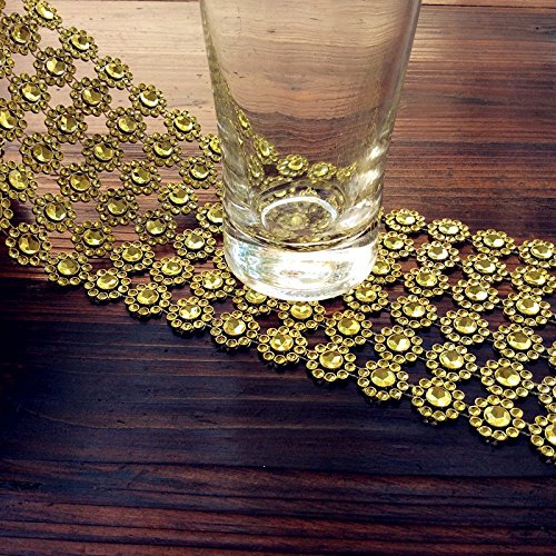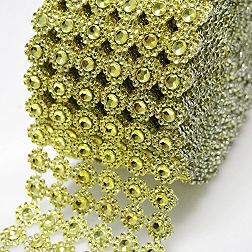 10 Yards Flower Diamond Rhinestone Mesh Ribbon Wraps Bling for Wedding Centerpieces Decorations Crafts Cupcake Decor (Gold)