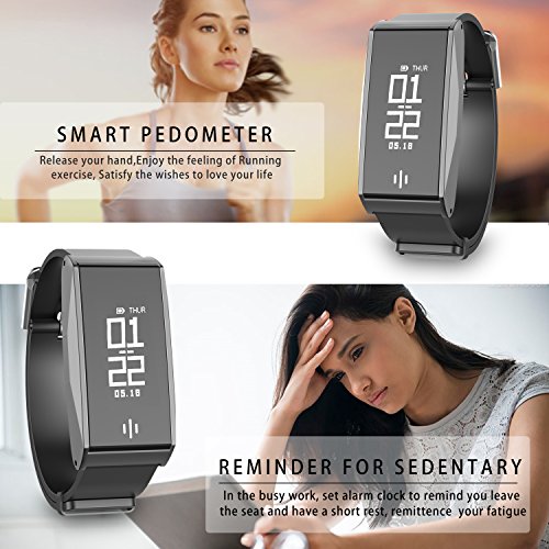 Heart Rate & Blood Pressure: 24 hours intelligent monitor your heart rate, blood pressure and blood oxygen, having this smart bracelet means having a personal health steward, it also has Sedentary reminder