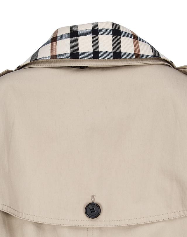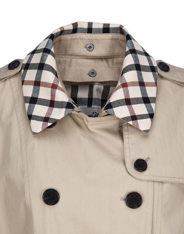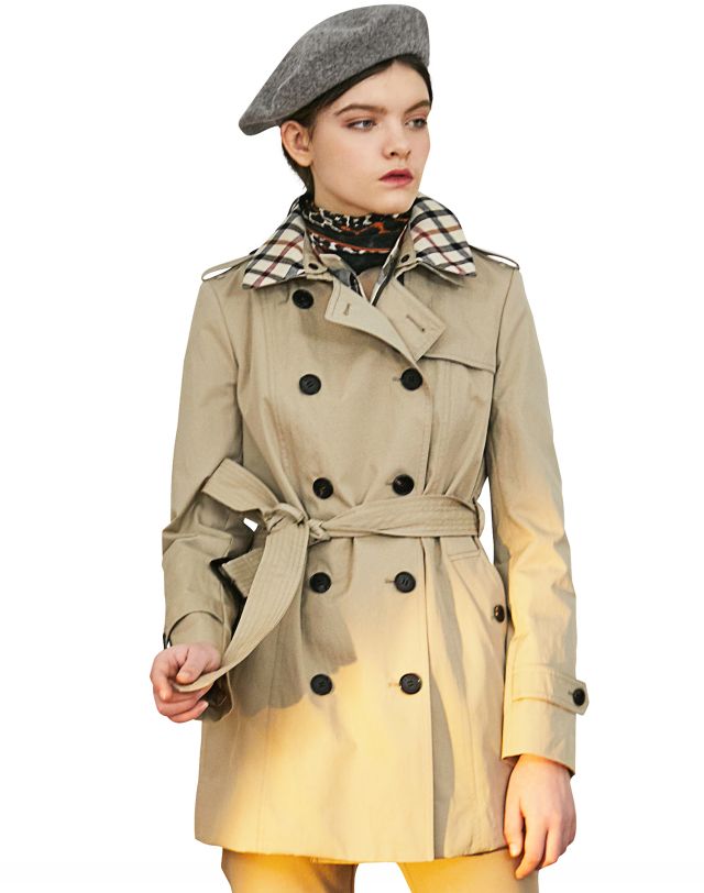 클래식한 체크 패턴의 탈착 가능한 카라와 내피로 날씨 스타일링에 따라 다양하게 활용 할 수 있는 더블 트렌치 코트입니다.