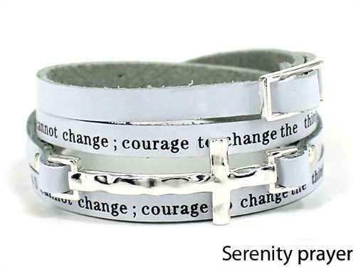 -. Title : Hammered Silver-tone Cross Cord Bracelet Lord grant me serenity to accept things I cant change