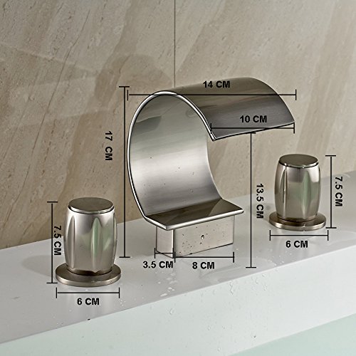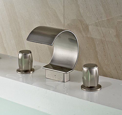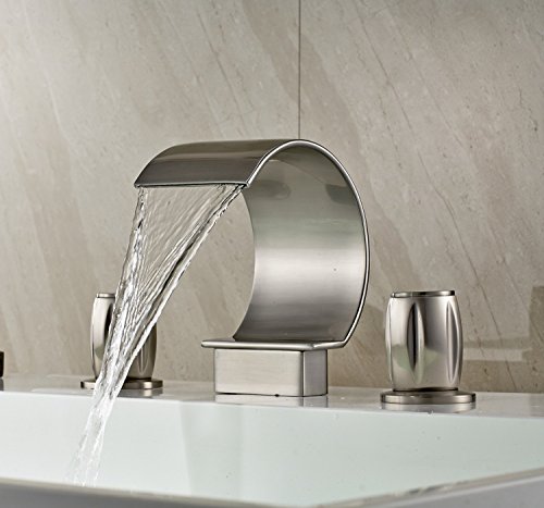 -. Title : iFaucet Waterfall Brushed Nickel Bathroom Sink Faucet Vessel Faucet Widespread Modern Two Handle Three Hole Faucets Lavatory Faucets Unique Designer Plumbing Fixtures Mixer Taps Supply Lines