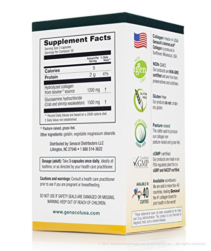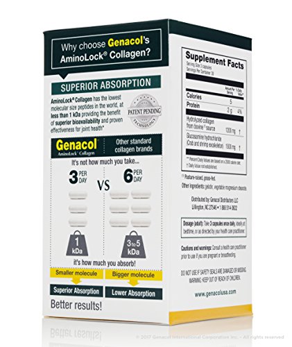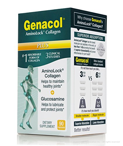 Genacol Plus is a natural and safe health product specifically designed for joint health. The collagen-glucosamine combination is the winner when it comes to ensuring good joint function and health. Genacol's AminoLock® Collagen is a unique protein complex that was created to have the lowest molecular weight in the world, offering superior bioavailability and proven effectiveness for joint health (supported by 3 published scientific studies). Combined with glucosamine, which helps lubricate and protect joints, Genacol Plus made with AminoLock® Collagen is the perfect combination of a 2-in-1 product, and provides excellent value for money. Furthermore, our product is manufactured to the highest cGMP Industry standards. Genacol Plus helps maintain supple and flexible joints, and relieves joint discomfort and stiffness. **These statements have not been evaluated by the Food and Drug Administration. This product is not intended to diagnose, treat, cure, or prevent any disease.Feature