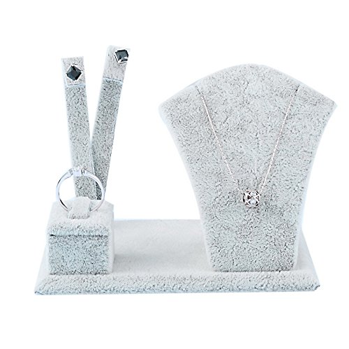 -. Title : HOUSWEETY 1PC Grey Multi-function Jewelry Necklace Ring Earrings Display Holder Stand
