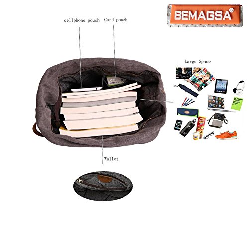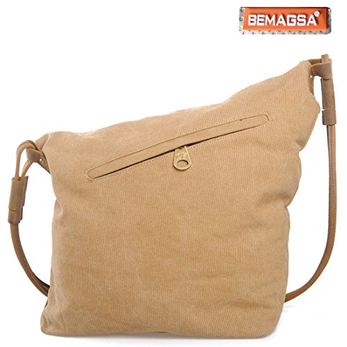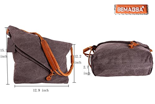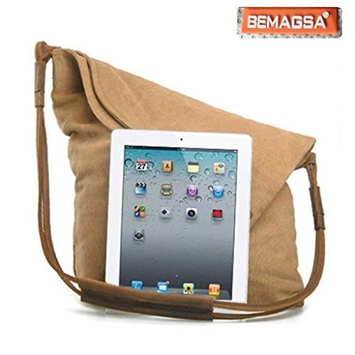 -. Brand : BEMAGSA -. Department : womens -. Feature : Great for school,outdoor living and journey.Back wall zip pocket for easy access. Roomy fully lined fabric compartment.Casual life style,General use for Female Male / Genuine Leather,Brass buttons hardware, Eco-friendly garment washed durable canvas, for your iPad, tablet, or eReader.Simple design, well sewn craftsmanship. / Sling this bag across the body for a cool and comfortable look whether you're traveling around the block or around the world. With cool style and canvas materials; it brings you more casual feel and happy to carry it all the time / This stylish sling bag offers storage for your tablet and other essentials for a day of traveling or a trek through the urban jungle.Back wall zip pocket for easy access. Roomy fully lined fabric compartment / Overall dimension: Approx. 13"L x 15.4/12.2"H x 3.6" W. 13" laptop,iPad fitting, easy to carry A4 size books ect.Integrated cross body shoulder strap; Backside zipper pocket; -. ProductGroup : Shoes -. ProductTypeName : HANDBAG -. Size : large -. Title : BEMAGSA Women's Men's Canvas Crossbody Messenger Shouder Handbag Tote Weekender Bag