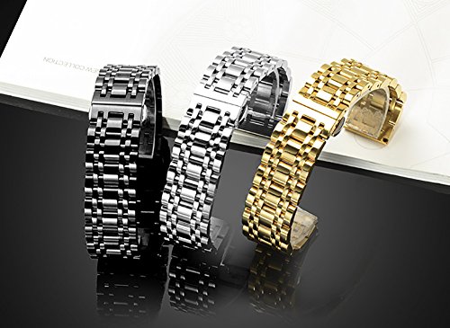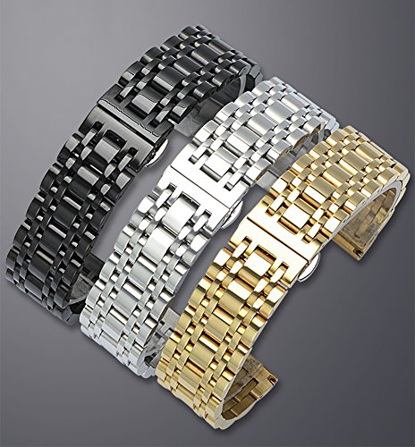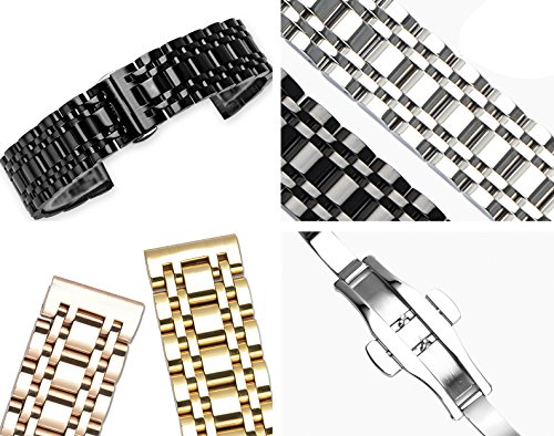 -. Feature : Made of soild stainless steel, full polished, can be worn for a long time and still keeps its luster; Wearable and not deformed, anti-allergic and anti-corrosion, Best for men women office, home, business or other casual occasion; / Size: 18mm, 20mm, 22mm, 24mm, range from 0.71in to 0.94in, fit for most watches, weight: 100g/3.5oz; / Adopt the vacuum plating and edge passivation treating, lubricant without burrs, do not hurt our hands; And the band can bend flexibly and freely, convenient to storage and save your space if you do not wear it; / Elegant buttery deployant clasp design, can snap open after pressing 2 buttons, easy to wear and take off; / Delivery Time- Free shipping by USPS delivery in 5-10 working days if you choose [Standard Shipping], if you have any question, feel free to contact us, we will solve it for you all the time.