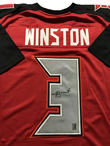 Autographed/Signed Jameis Winston Tampa Bay Buccaneers Red Football Jersey GTSM COA Holo Only