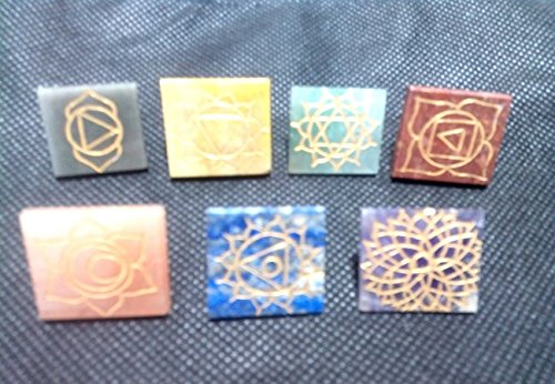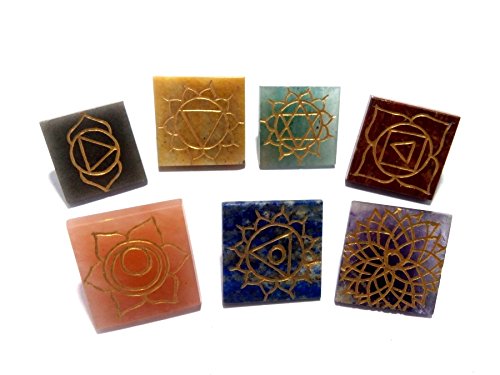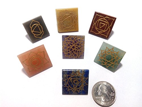 Set of 7 Engraved Pyramid Chakra Set -- 7 (Seven) Pyramid Shaped Chakra Stone - Metaphysical - Reiki