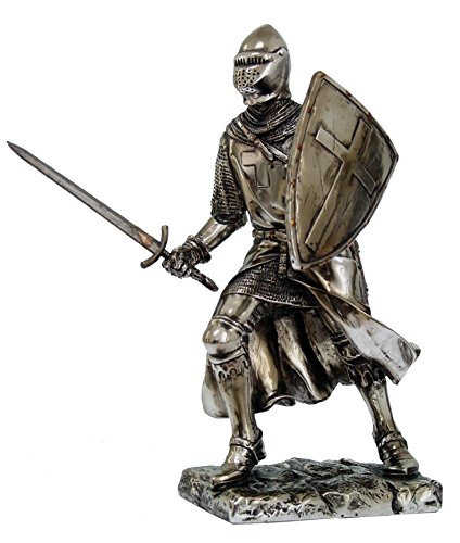 Crusader Knight Statue Silver Finishing Cold Cast Resin Statue 7" (8714)