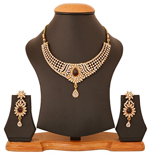 -. Feature : BRAND : Touchstone is the Premium Fashion Jewelry Brand Of India since 20 years. They have been recreating the exquisite treasure of Indian Heritage Jewelry and retailing across India. Now available in the U.S.A. at your doorstep. PACKAGING In Branded Box perfect for gifting. Extra stones and Ear push. / OCCASION Will add luster when worn for a wedding, engagement, party, prom and any special occasion. Will enhance special days like Christmas, Birthdays, Anniversaries, Valentine's Day, and Mother's Day. A Beautiful & Memorable Gift for all occasions. / SPECIFICATIONS : Necklace circumference 6 inches with adjustable/extendable soft tassel. Earring weight (single) 7 gms. Earring length 2.50 inches. 0.75 inch. "This is in a special dark gold plating to recreate the look of antique jewelry". / MATERIAL & TECHNIQUE : Stainless steel Ear Posts. Special Long lasting Plating with Lacquer finish. Recreates Studded Diamond Jewelry. Made of Long lasting Alloy Metal and good quality white Austrian crystals diamonds Rhinestone and faceted pear shape candy red faux ruby. Hand Finished / 100% RISK FREE PURCHASE; Money Back if not delighted; Enjoy Long lasting plating, handcrafted finish and attention to detail.