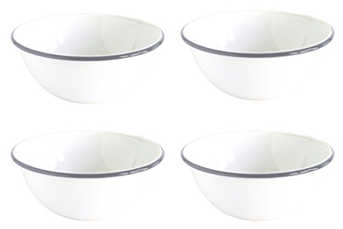 Crow Canyon Enamelware Round Salad/Soup/Serving Bowl, Classic Tableware - Set of 4 - White Body with Grey Rim, 8.5 Inches