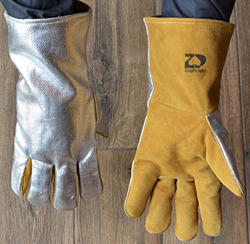 - MAIN MATERIAL and FEATURES : The fully back of hands made from high quality Aluminized Carbon Kevlar which can directly reflect 1000°C indirect high temperature heat radiation, the fully palm made from cowhide leather which can resist 250 °C high temperature, Kevlar thread features better protection against sparks and abrasion, Reinforced wing thumb design for maximum flexibility, holding items and operate easily.