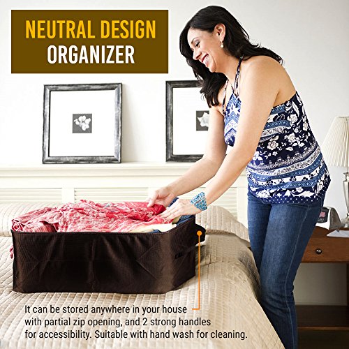 COMPACT DESIGN ORGANIZER - This underbed fabric storage can be stored anywhere in your house with partial zip opening and 2 strong handles for accessibility. Hand-wash the storage to clean it.