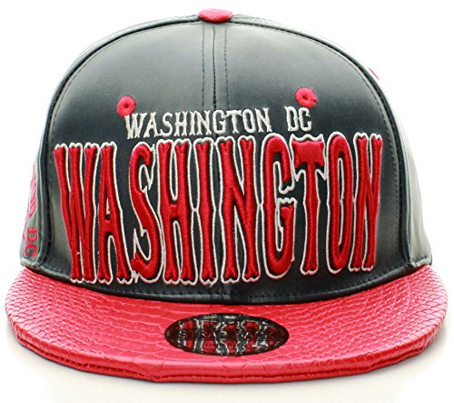 - Title : American Cities Washington DC Faux Leather Flat Bill Snap Back Hat Cap