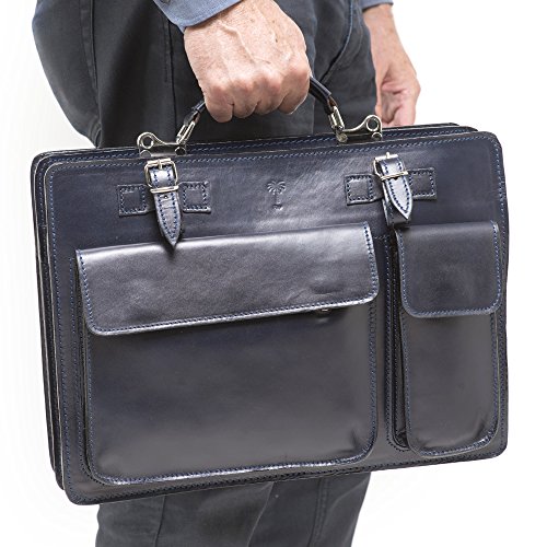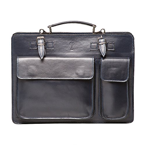Product Description The Marlafiji Hilly Navy leather briefcase has two separate compartments, can fit a laptop and much more, outer compartment for a calculator etc a smaller compartment for your glasses , another zip up compartment for your folders, leather top handle, additional detachable shoulder straps for hands free use. - Dimensions L 38 cm X H 28 cm x W 10 cm - 100% Genuine leather - Silver metal accessories - Two separate compartments - Additional zip up l compartments in back - additional detachable shoulder straps - Zip up closure - Made in Italy 0