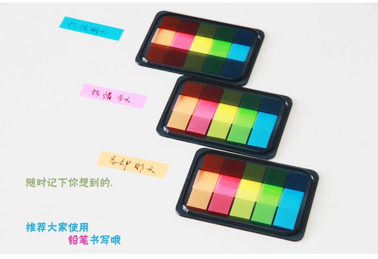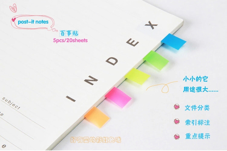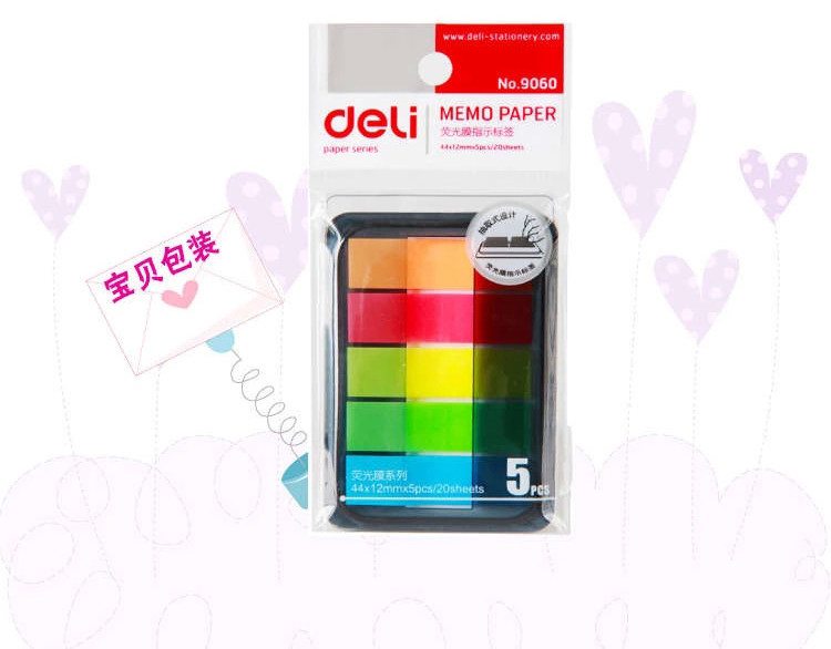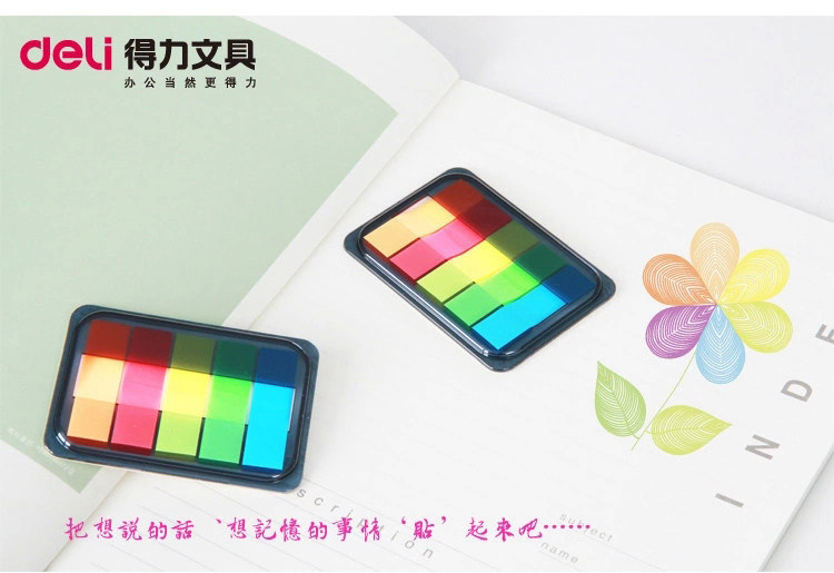 󰄬得力可爱指示标签韩国荧光便笺分类贴便利贴抽取索引贴透明百事贴