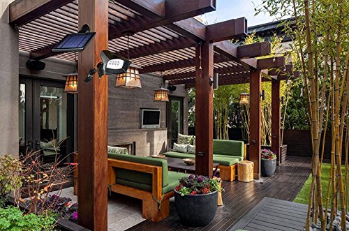 Outdoor Solar Lights This wall-mount solar spot light is self-sufficient, weather-resistant, easy to install and completely wireless, a perfect lighting choice for your garden patio, lawns, pathway, garage driveway, decking, docks, pool areas and so on, where you don't have power outlets but in need of some lights for the long night.