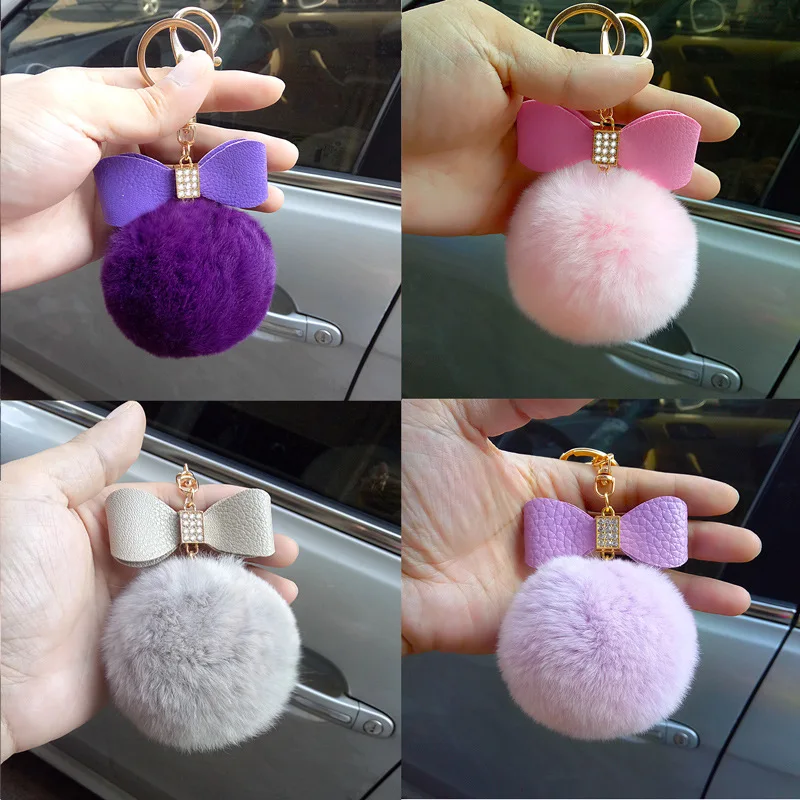 rabbit fur keychain:porte clef key chains