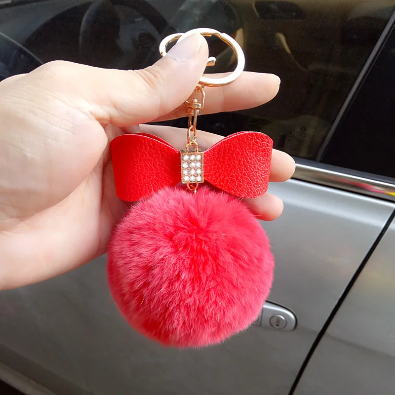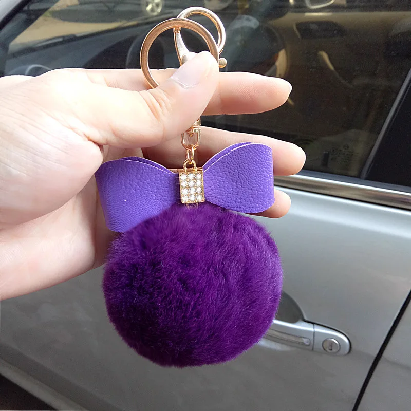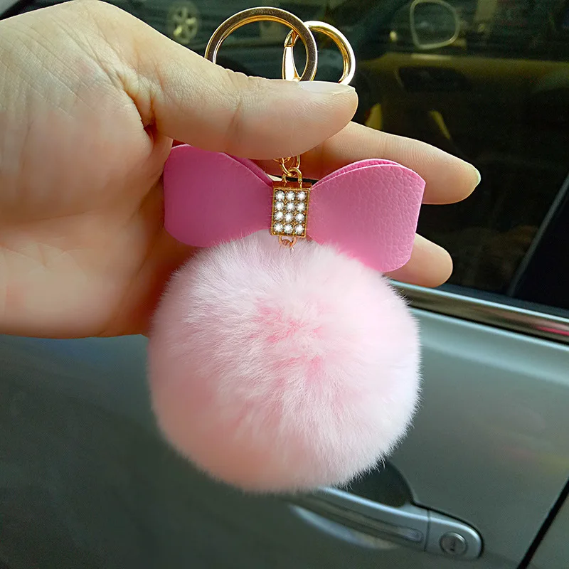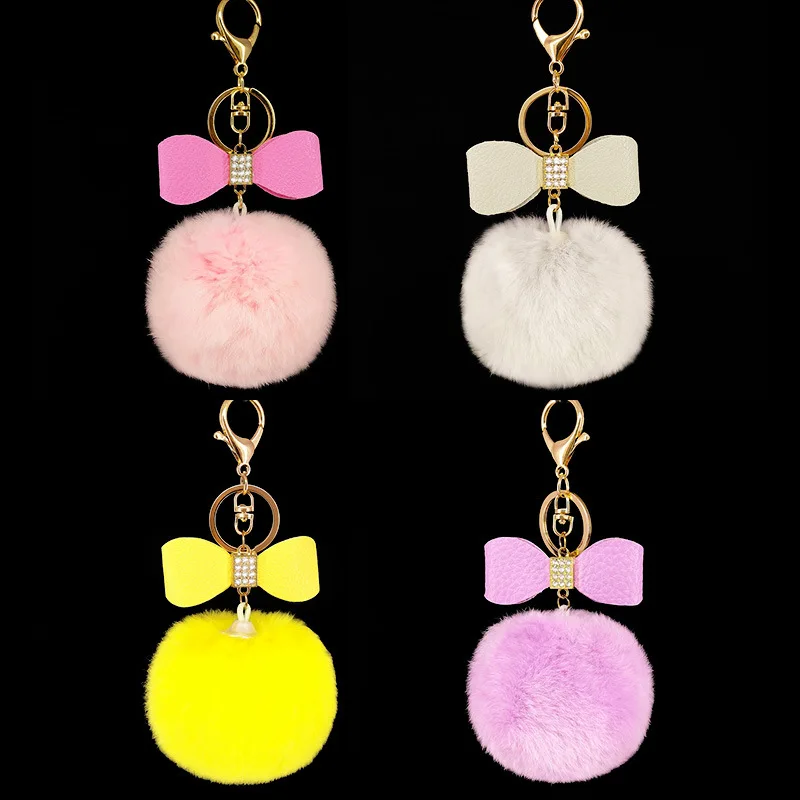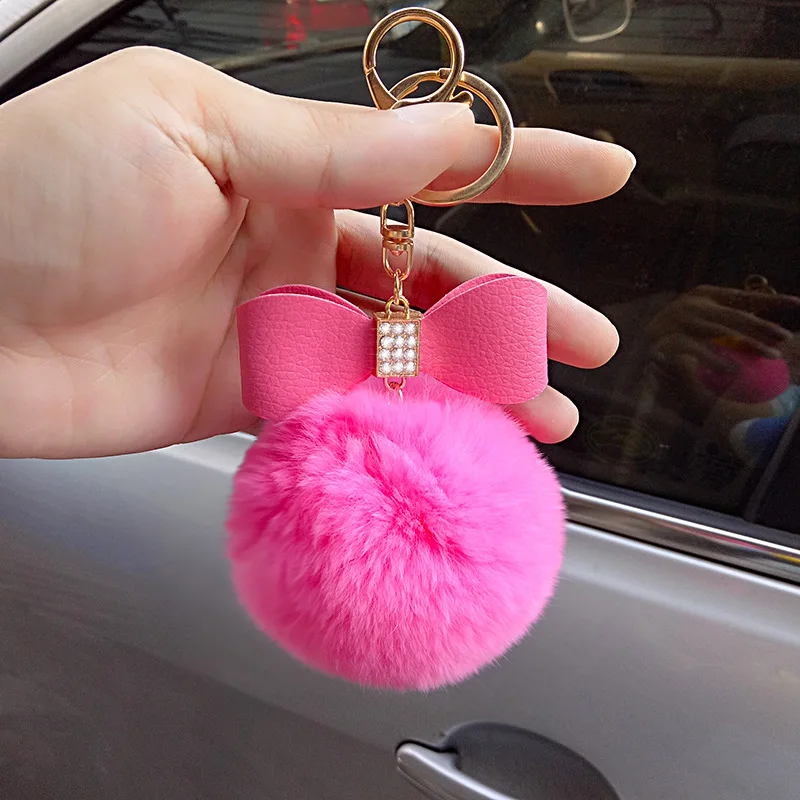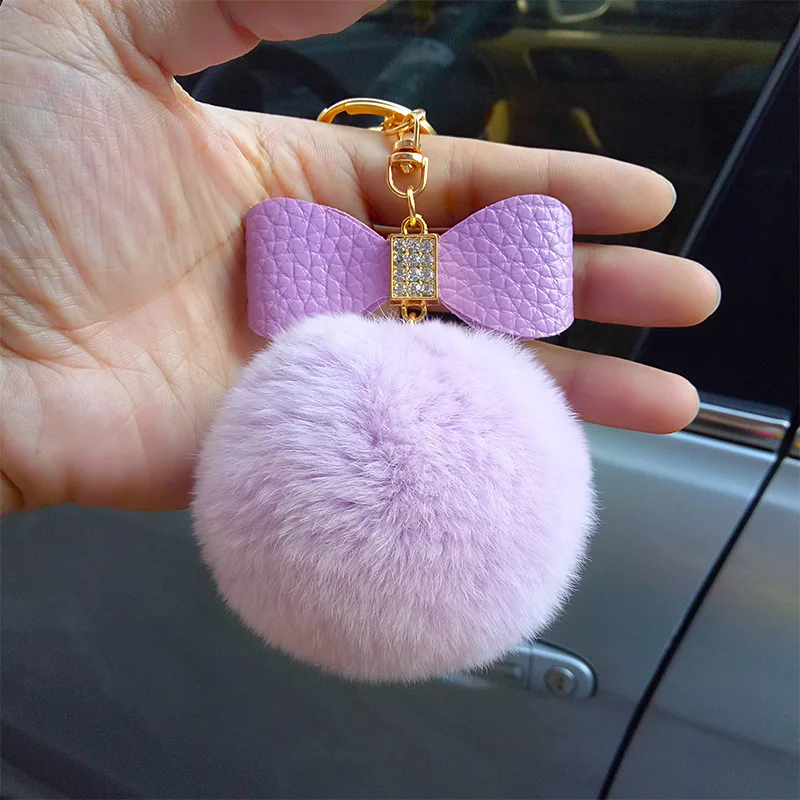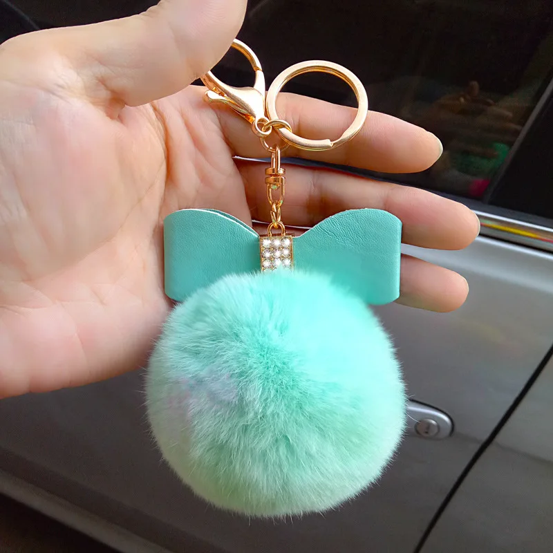 bag charm pom pom keychain:fur pom pom keychain