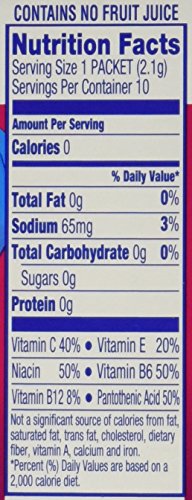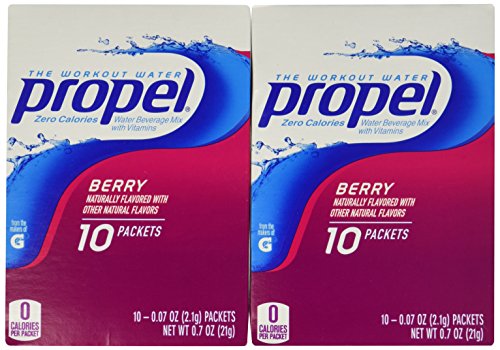 Berry Propel Zero Powder Packs - the new way to hydrate. It's a flavored-water beverage enhanced with antioxidants, vitamins B, C and E, plus other nutrients. This great tasting Berry flavored propel pack, contains 0 calories per serving, making it deliciously refreshing and the perfect way to rehydrate on the go, without feeding your body with caffeine, or highly-sweetened energy drinks. Propel Zero powder packets are the most convenient way to rehydrate and recharge your body naturally on-the-go. Just open 0.1 oz. pack and mix it with fresh water for and enhanced hydration and to re-energize your metabolism with vitamins and antioxidants. This is the easiest way to enjoy the hydration powers of Propel Zero. Ingredients: citric acid, sodium citrate, potassium citrate, maltodextrin, sucrose, ascorbic acid(vitamiv C), sucralose, silicon dioxide, niacinamide(vitamin B3), acesulfame potassium, calcium, disodium edta(to protect flavor),calcium pantothenate(vitamin B5), natural flavor, vitamin E acetate, vitamin B6, vitamin B12. Technical Specs: Serving Size: 1/2 packet (1.5 g) Servings per Container: 20 Amount per Serving: Calories (0) Total Fat (0g) Sodium (30mg) Total Carbohydrate (0g) Sugars (0g) Protein (0g) Vitamin C (20%) Vitamin E (10%) Niacin (25%) Vitamin B6 (25%) Vitamin B12 (4%) Pantothenic acid (25%) Not a significant source of calories from fat, saturated fat trans fat, cholesterol, dietary fiber,vitamin A, vitamin C, calcium and iron.Feature