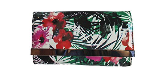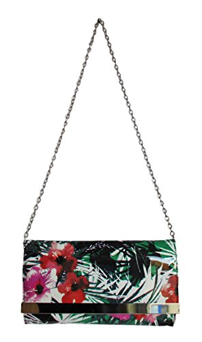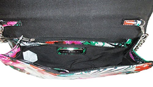 Product Description Everything an it girl needs! Make an entrance with this chic center stage metal accented clutch with in supple printed synthetic upper with a slender drop in chain strap. It's the perfect matching piece for all of your fabulous Steve Maddens! The synthetic material is easy to wipe clean. Removable chain strap which can easily be tucked into bag. Chain strap approx. 15" drop. Top flap with magnetic snap closure. Metal silver tone hardware. Fully lined interior with multi-functional slip pocket. Approximate measurements: 5.5" high x 10.5" wide x 1.5" deep. 0