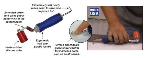 - Combo tool that lets you roll out seam and test it with one hand. No fiddling needed.