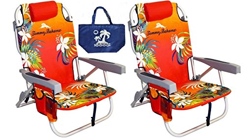 2 Tommy Bahama Backpack Beach Chairs/ Red + 1 Medium Tote Bag