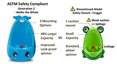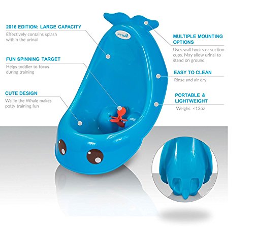 ENHANCED FEATURES WITH FREE POTTY TRAINING CHART & STICKERS - Comes with enhanced spinning water wheel to keep toddler focused. Encourage imaginative learning through Wallie the Whale story with training chart and stickers (Value: $5.99) included