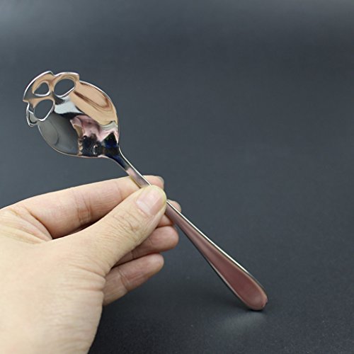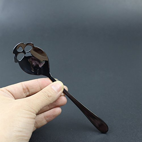 4)UNIQUE DESIGN:The openings for eyes and nose make it easy to shake off excess sugar to curb your sugar consumption,perfect for tea and coffee stirring,can also be used as dessert spoon and absinthe spoon or any other need of a small utensil.