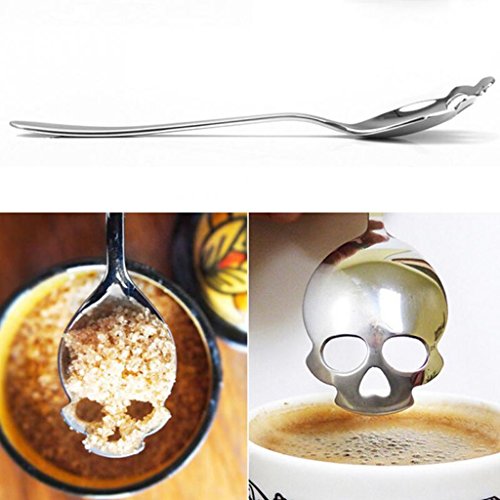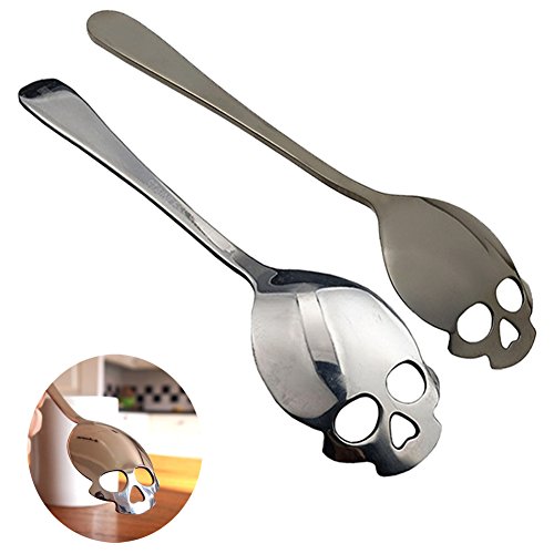 3)COOL & STYLISH:This skull spoons is modern and comfortable,ideal gift for spoon collectors who are obsessed with skulls,easily matches existing flatware in your kitchen.