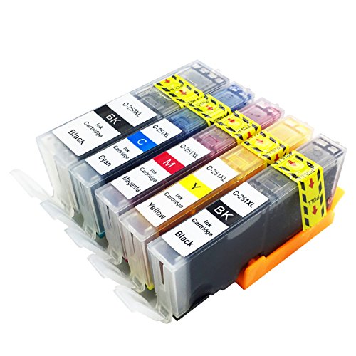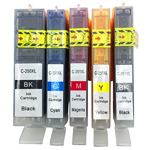 Included in Box 1 Compatible PGI-250XL Black Ink Cartridge 1 Compatible CLI-251XL Black Ink Cartridge 1 Compatible CLI-251XL Cyan Ink Cartridge 1 Compatible CLI-251XL Magenta Ink Cartridge 1 Compatible CLI-251XL Yellow Ink Cartridge For use with following Canon printers. PIXMA iP7220 PIXMA iP8720 PIXMA iX6820 PIXMA MG5420 PIXMA MG5422 PIXMA MG5520 PIXMA MG5522 PIXMA MG5620 PIXMA MG6320 PIXMA MG6420 PIXMA MG6620 PIXMA MG7120 PIXMA MG7520 PIXMA MX722 PIXMA MX922 For your information 1. If something comes up upon the ink cartridges' arrival, contact us for a solution instead of leaving an upset review. 2. If your printer prompts a message like 'Non-Original Cartridge' or 'Not Genuine Cartridge', please just ignore that and press 'Continue', 'OK' or 'Yes' to finish installation. 3. If some cartridge can't be recognized by your printer, take it out and wipe the cartridge chip with an eraser or paper napkin.