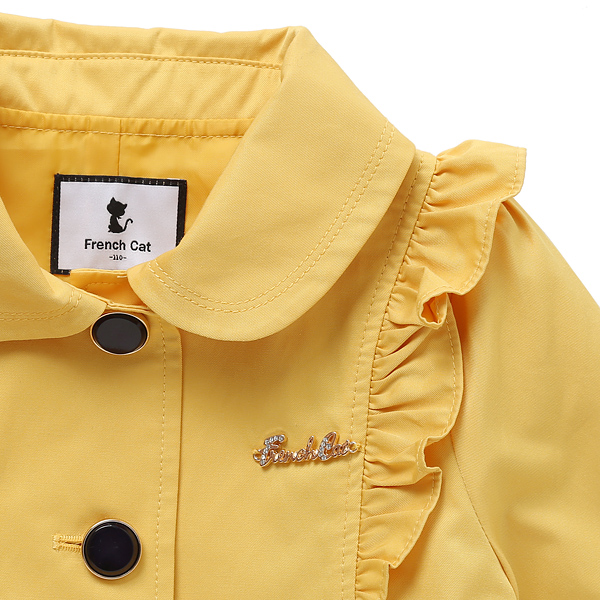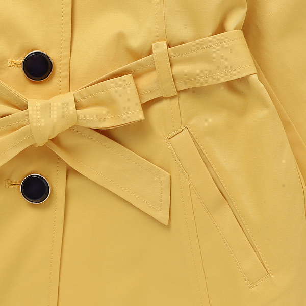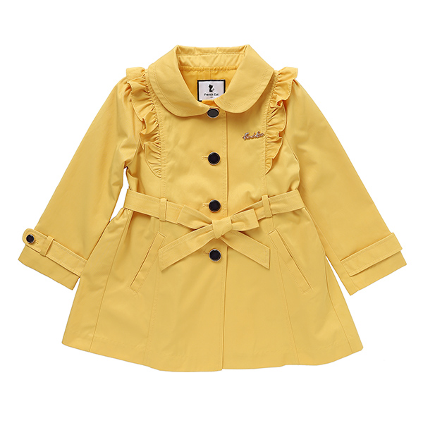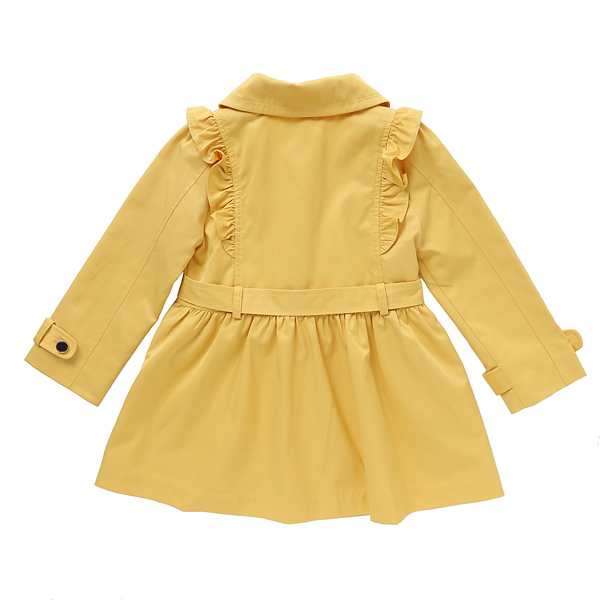 상품설명 머스타드 옐로 트렌치코트입니다. 심플하게 떨어지는 핏에 사랑스러운 프릴디테일과 셔링이 들어간 뒷라인으로 포인트를 주었습니다. 제원단 벨트로 체형에 따라 예쁘게 연출해주세요.