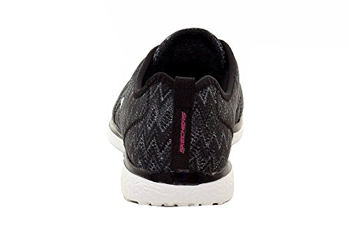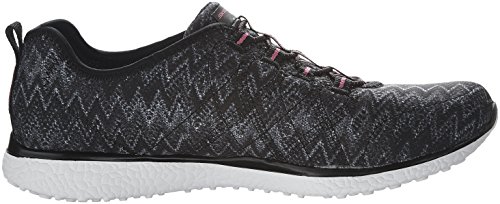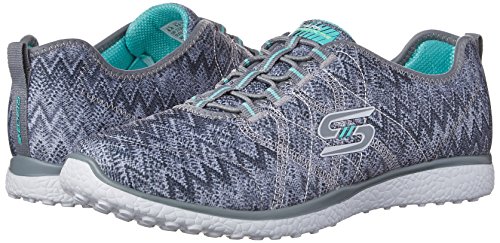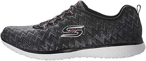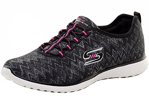 Product Description Switch up your sporty style and comfortable stride with the SKECHERS Microburst - Fluctuate shoe. Soft smooth zigzag print fabric upper in a slip on bungee laced sporty comfort walking sneaker with Burst material midsole and Air Cooled Memory Foam insole. 0