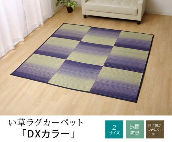 【商品名】い草ラグマット カーペット 約2畳 正方形 『DXカラー』 ブルー 約180×180cm (裏:不織布)