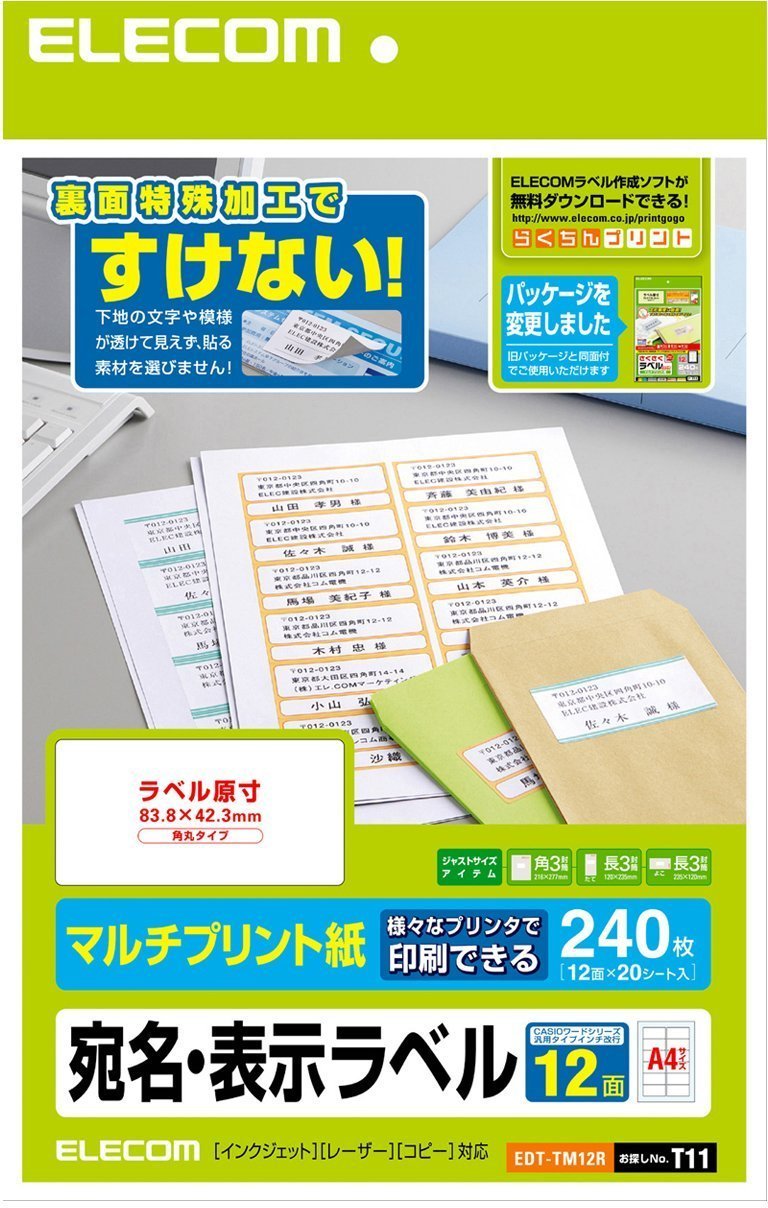 ELECOM mailing label seal A4 size angle Round Type 12 face 20 sheet EDT-TM12R