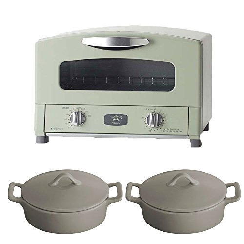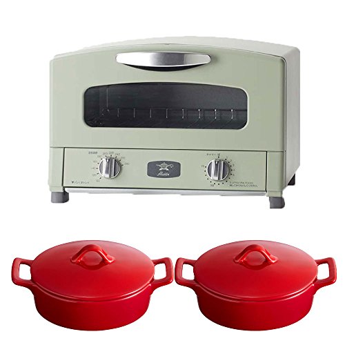 알라딘 그라파이트토스터 AET-G13N 2 매구이 그린 + oval코코트미니 × 2 3점세트 (레드×레드)