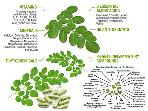 Studio : Thailand Publisher : Thailand Binding : Health and Beauty Product Description 200 capsules of Dried Moringa leaf. Herbal Herb Dietary supplement. Moringa Leaf - Good Health Like many other herbal products, Moringa leaf contain minerals and vitamins that are essential for the maintenance of good general health, when used as part of a balanced diet. In this listing you will receive 200 Moringa leaf capsules 0