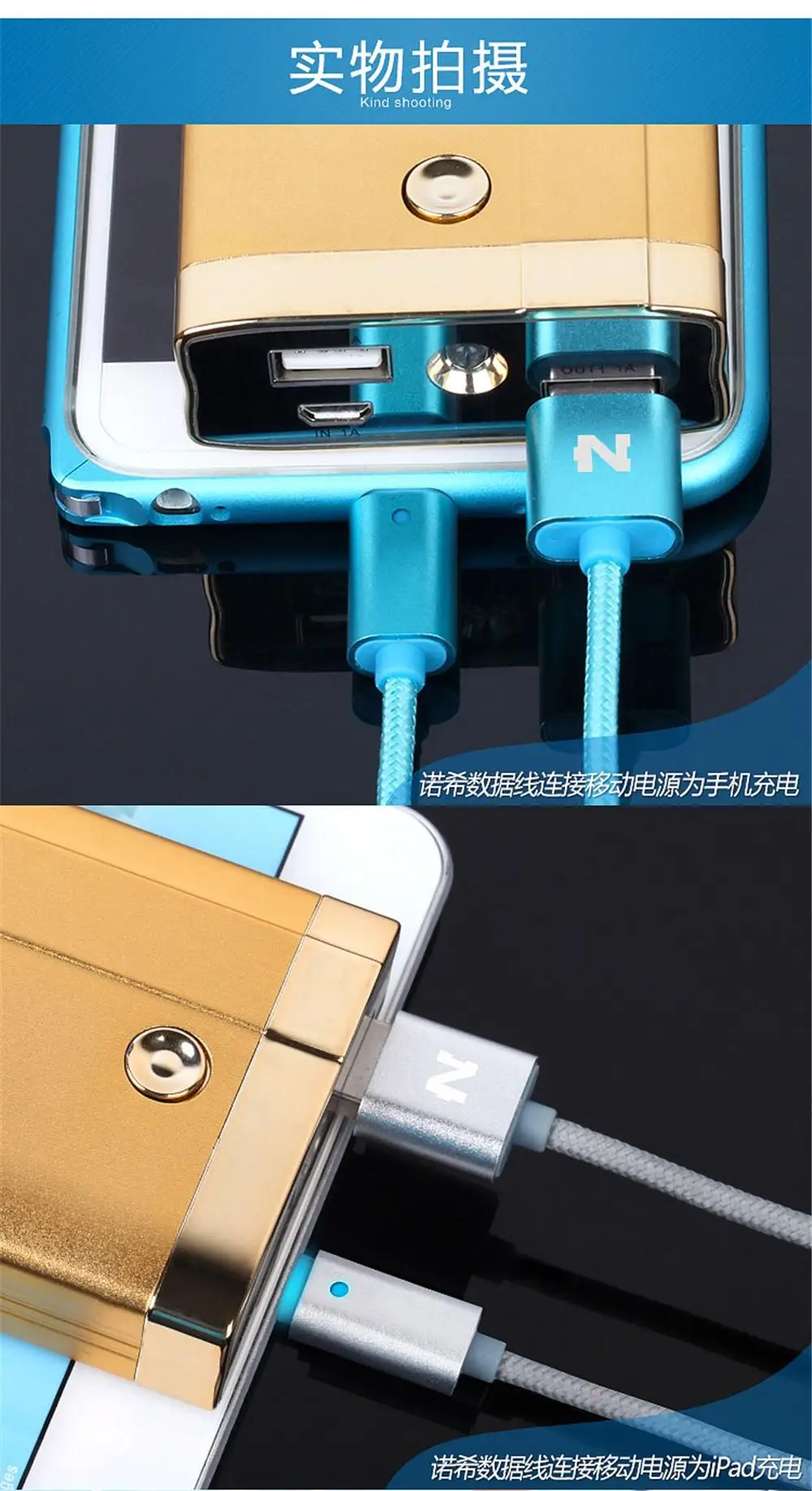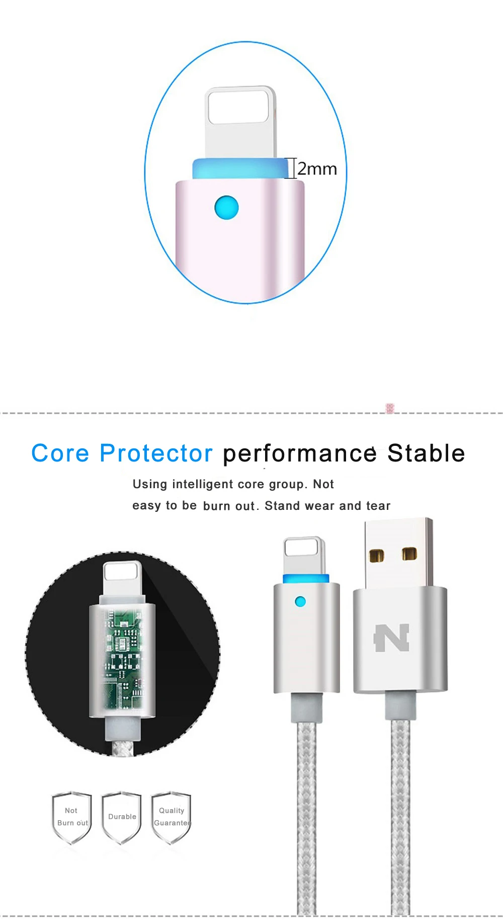 Features:Smart LED Light Metal Braided Cable