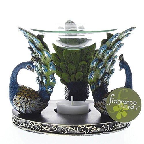 Studio : Kohler Home Decor Publisher : Kohler Home Decor Binding : Kitchen Product Description Package: 1 EAThree gorgeous peacocks are perched to perfection, ready to fill your space with your favorite aroma. Simply fill the clear basin at top with your favorite scented oil and place a tealight candle below, and enjoy the glow as this trio of peacocks show off their stunning plumage. Oil and candle not included. Item weight: dimensions: " W x " H x " LMaterials: Polyresin Glass 0