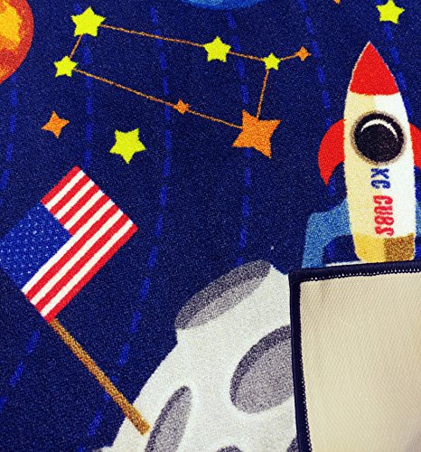 KC Cubs Space Safari Educational area rug has everything a child needs to start learning the basics of the English language while having fun.It is perfect for children's bedroom and play area. The 8 x 10 learning carpet size is great for a nursery, daycare, classroom and kindergarten. Your child will love playing on this rug. It promotes make believe play, interactive play and cognitive play. Includes all the planets, the moon, rocket ship, hubble telescope, black hole, comet, asteroids, astronaut and an UFO for the most complete space experience possible. Goes great with any space related toys especially Lego. t is made of excellent quality polypropylene and has a low pile which makes cleaning the rug a breeze. Thanks to its non skid latex rubber backing KC CUBS Playtime Collection Space Safari Map rugs creates a safe play area for your child to play out his own scenarios in a world beyond ours.Feature
