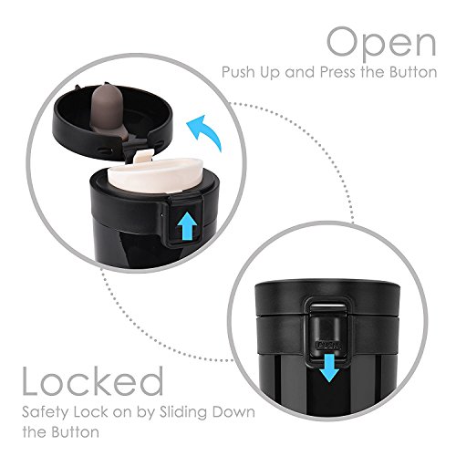 Safety lock design:New lid-lock prevents the Push button from accidentally being pushed while on-the-go. Push lid automatically seals between sips to prevent leaks and spills.