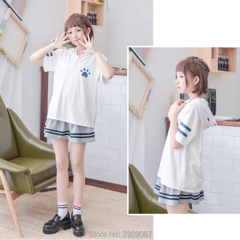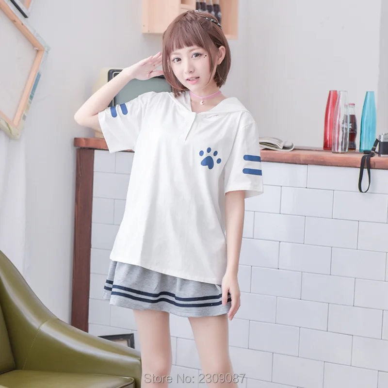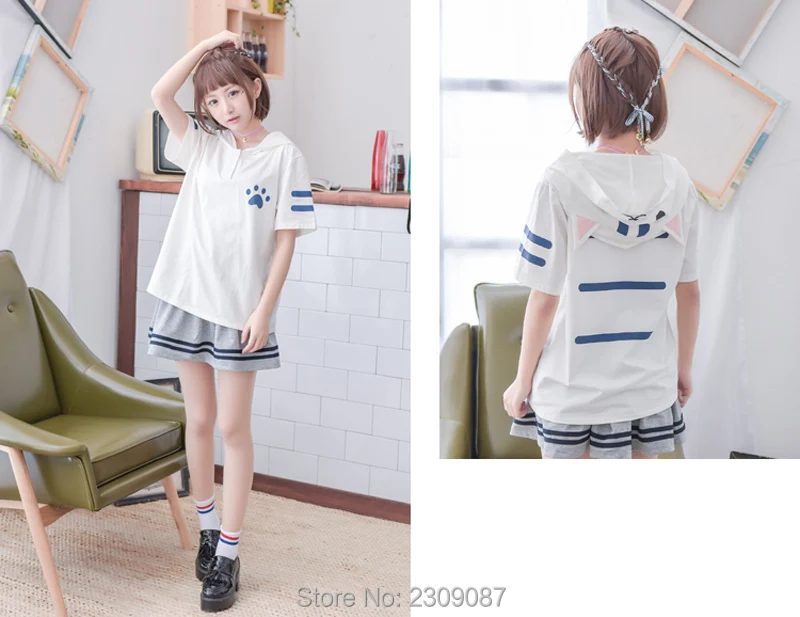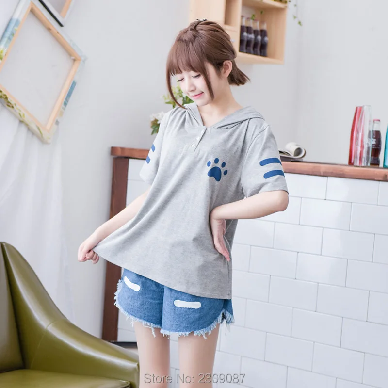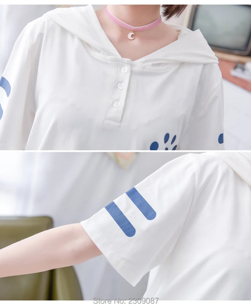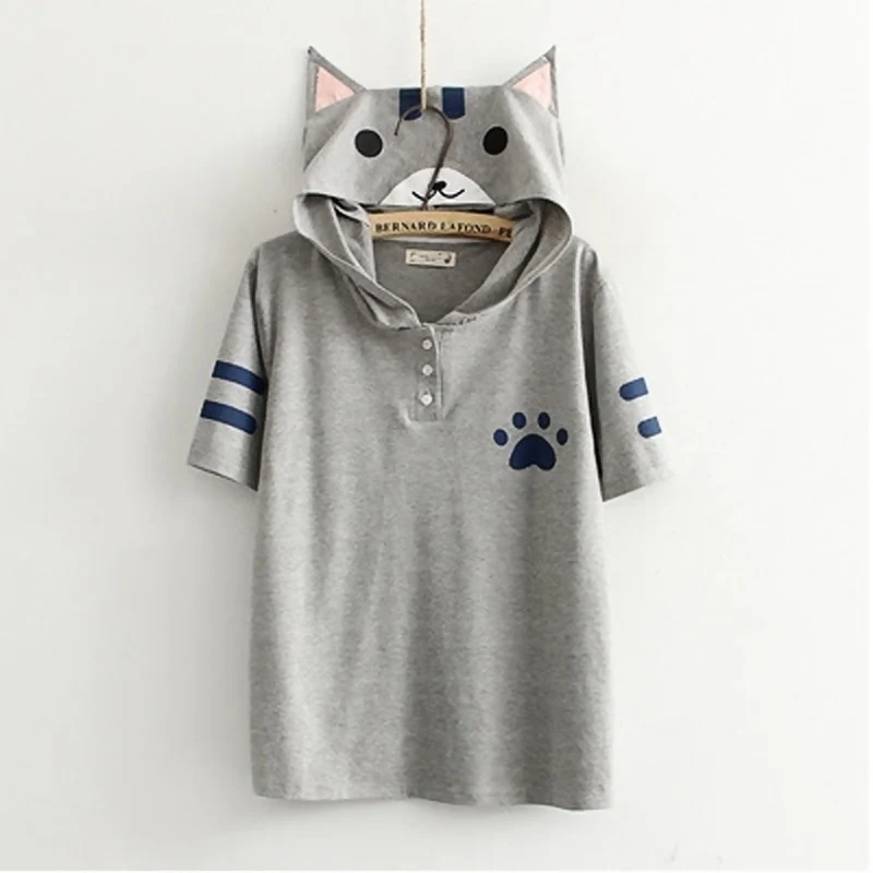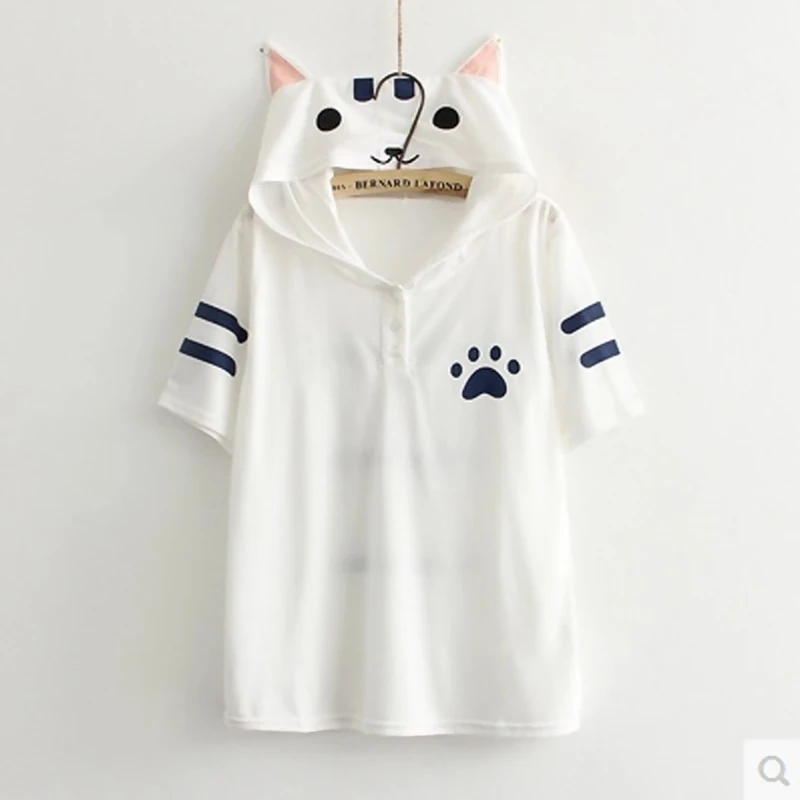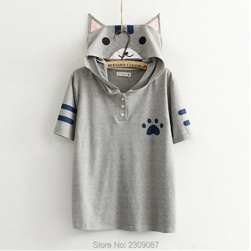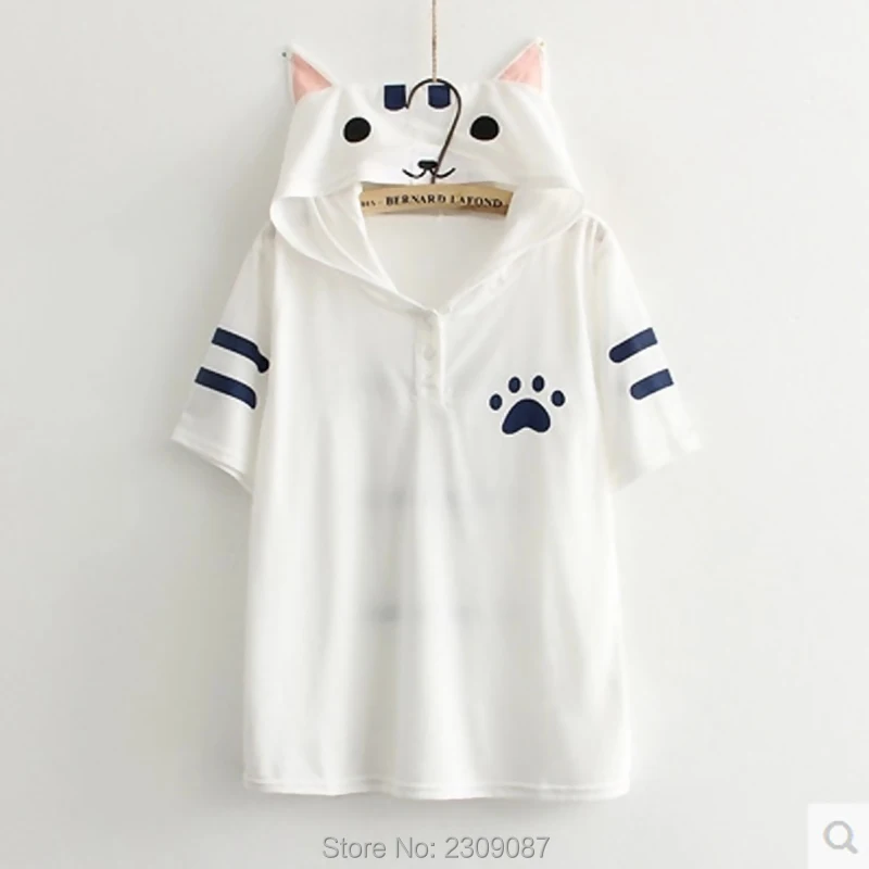 roupa feminina:Kawaii Cat hooded Shirts with Ears