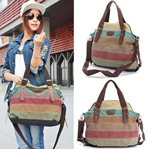 -. Title : OURBAG Women Canvas Stripe Handbag Cross body Shoulder Bags Tote Satchel Messenger Bag