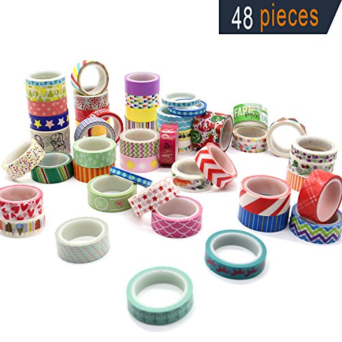 Washi Masking Tape, 48 Rolls Decorative Craft Tape Sets for DIY & Gift Wrapping with Pretty Patterns in Different Style