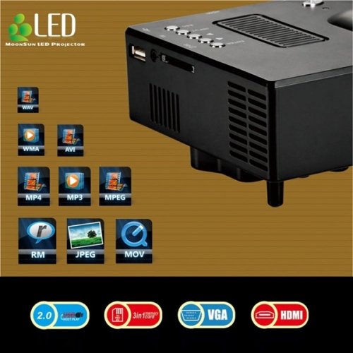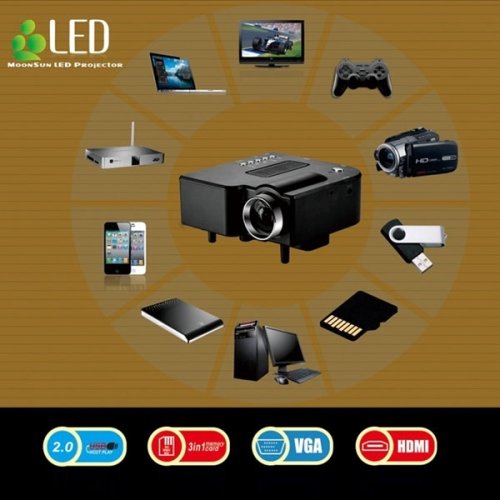 - Feature : Native 320x240pixels physical resolution support 1080P(Full HD) Input dynamic image for home theater, 9PCS LED bulbs can burst out 61lumes brightness. / Portable design, easy to take and travel.System Support:Multi-media (Music, Picture, Video, TXT); Enjoying watching movie at home and outside for camping / The projector is small and light, easy to carry / Manual focus adjusting, makes it can providing suitable pictures that you need / Not recommended for PPT or business presentation, ideal for home theater movies and video game use.