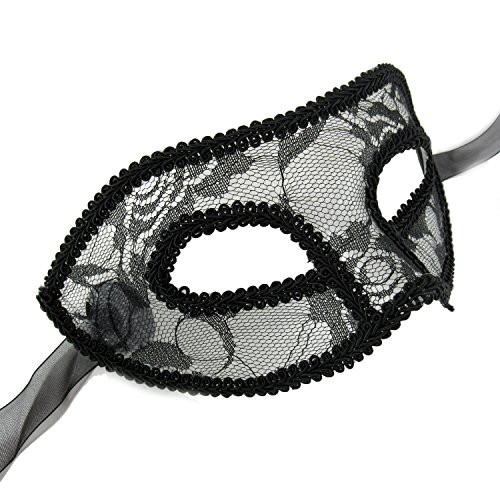 -. Feature : Make a grand entrance at every masquerades! These sheer lace masks for has a rigid but flexible plastic underside which is more comfortable than the laser cut metal masks. / Picture perfect! Every photo of you in this Venetian mask will be Instagram worthy! / Enjoy the party! Between holding drinks and dancing, the last thing you need is to adjust the mask every 10 minutes. Fabric ribbon is securely attached to mask to ensure that it stays on at all times. / Easy to wear! This black mask matches most cocktail dresses, vintage outfits or costumes.