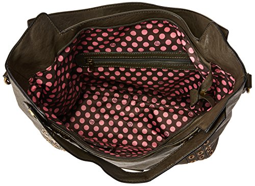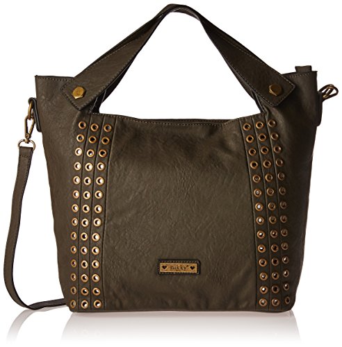 -. Binding : Apparel -. Brand : Nikky -. Feature : Made of high quality eco-leather. Zipper closure. Back zip up pocket. Lines of gleaming grommets embellish the sides. / Flat base for slight structure. Includes signature Nikky logo nameplate. / Top double handle with 6.5" drop. Detachable and adjustable strap extending from 44"- 50". / Interior features: large main compartment. Zip and slip pockets. Lined with signature nylon Nikky polka dot P.R.Int. / 16x5x11 -. Label : Nicole Lee -. Manufacturer : Nicole Lee -. PackageQuantity : 1 -. ProductGroup : Apparel -. ProductTypeName : BAG -. Publisher : Nicole Lee -. Studio : Nicole Lee -. Title : Nikky Women Top Handle Satchel [olive] Handbag Shoulder Bag