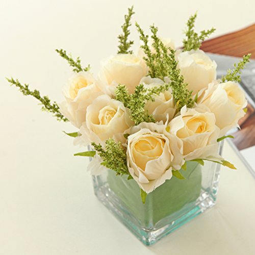 Add the beauty of roses year round with this realistic faux 9 rose arrangement. With these gorgeous roses you'll never have to worry about keeping it alive. Although it looks very real it is an imitation, and retains its magnificent blooms all year long. Spruce up any surface in your home such as desktops, coffee tables, or dining tables with this eye-catching faux flower, and enjoy having exotic greenery in your home through all the seasons.**Official MyGift® product.**