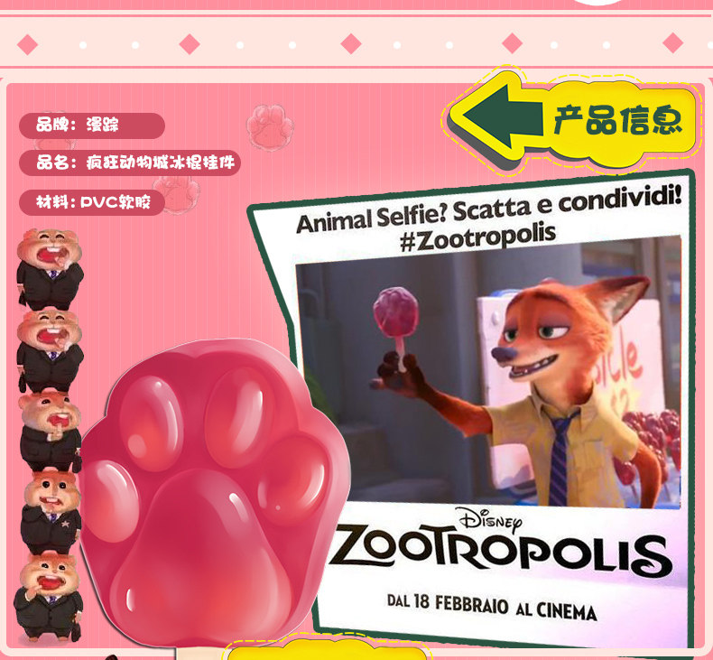 疯狂动物城电影动漫兔子朱迪狐狸尼克周边卡通冰棍挂件