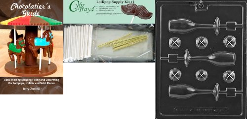 Cybrtrayd Champagne Glass Lolly Chocolate Candy Mold with Chocolatier's Bundle, Includes 25 Lollipop Sticks, 25 Cello Bags, 25 Gold Twist Ties and Chocolatier's Guide