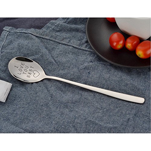 Studio : Bling Bling Publisher : Bling Bling Product Description ★Description★ -The engraved words make the spoon look cool and stylish. It is a fun and decorative accessory for your daily life. Impression will remain forever even after million washes. -The funny spoon can also encourage your kids to eat more, and stir kinds of drinks food. Cool and stylish design, ideal gift for spoon collectors. -Convenient and lightweight, no spotting or rusting, easy to clean and dishwasher safe. Made from thick gage stainless steel, corrosion resistant. -Long handle spoon 8 inches. Strong enough to stir deep into a thick shake without bending. ★Specification★ Material: High quality food grade 304 Stainless Steel Color: Silver Style: Engrave Dimensions: 8.19x1.58inches, Thickness 0.12inches. Net Weight: 1.77oz (50g) Gross Weight: 3.88oz (110g) ★Package Includes★ 1 x "I LOVE YOU BABY" Engraved Spoon 1 x Gift Box ★GUARANTEE★ All products from our company enjoy the long-life guarantee and our superb after sale service. Any problem please feel free to contact us. We guarantee you'll love our products, and if you aren't absolutely satisfied, return it within 30 days for a refund, no questions asked.